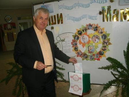 В рамках Республиканской профсоюзной акции «Поздравим маму вместе!» и недели матери, проводимой в Республике, в фойе средней школы № 7  11 октября была организована тематически оформленная «точка» , где любой желающий мог совершенно бесплатно заполнить поздравительную открытку и отправить ее своей маме. Профсоюзным комитетом  школы  были распечатаны поздравительные открытки, закуплены почтовые конверты.     В акции приняли участие педагоги, вспомогательный персонал школы, работники школьной столовой, работники ЦКРОиР, родители. Все участники  благодарили профактив школы за столь трогательную, сердечную  акцию     По окончании акции  70 поздравительных открыток для самого дорогого в жизни человека разлетелись в различные города и деревни Республики Беларусь.
